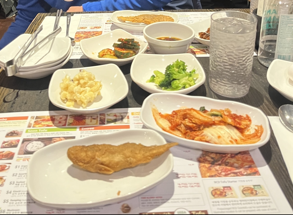 The Banchan (side dishes) are also delicious. Enjoy Macaroni, Fish Skin, Kimchi, and my favorite a small fried fish.